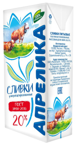 «Сливки питьевые "Апрелика" ГОСТ МДЖ 20%,1 л, УТП БЗМЖ Молочная Жизнь ООО (производитель) - Купить в магазине "Светофор" город Подольск, мкр.Климовск ул. Московская д. 15а